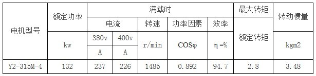 馬達(dá)額定功率(額定輸出功率或額定軸功率):P = 132kw